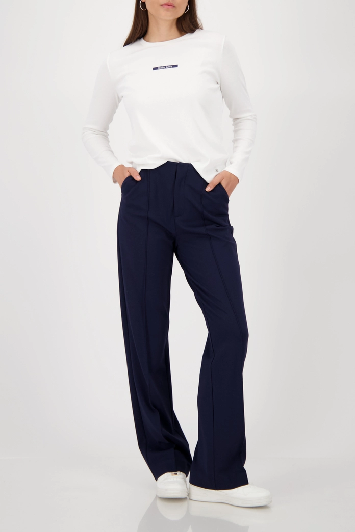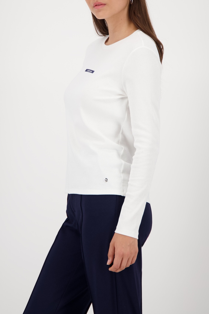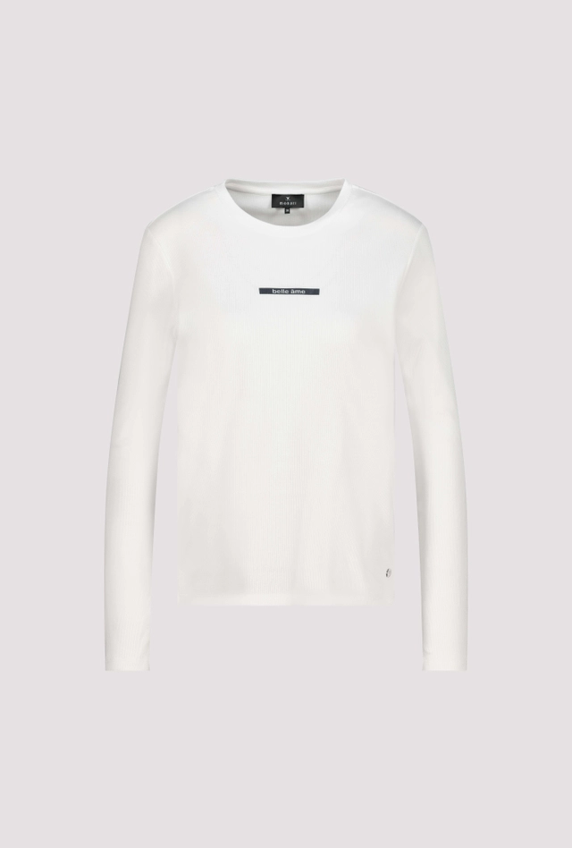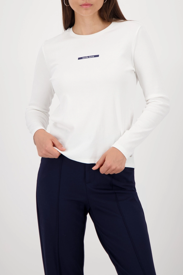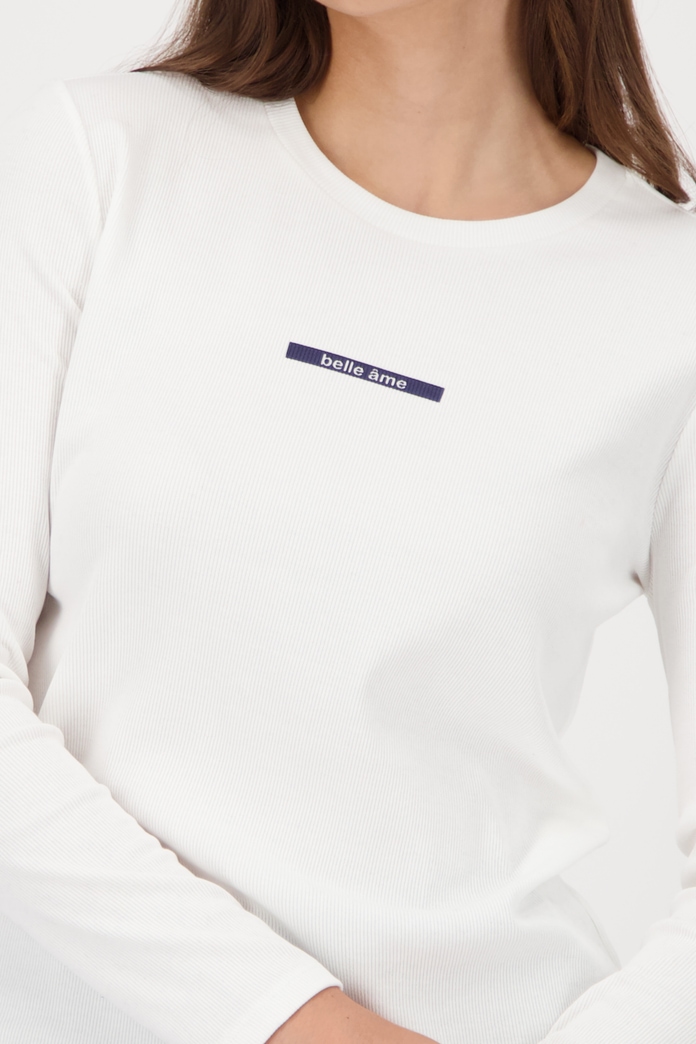 Elegantná košeľa s dlhým rukávom vyrobená z vysoko kvalitnej bavlnenej zmesi s elastickým materiálom, rebrovanou štruktúrou a štýlovou mini nášivkou „belle âme“.