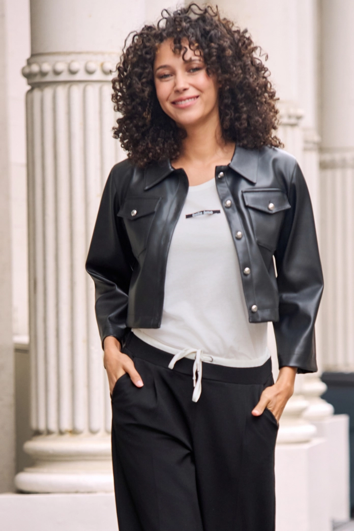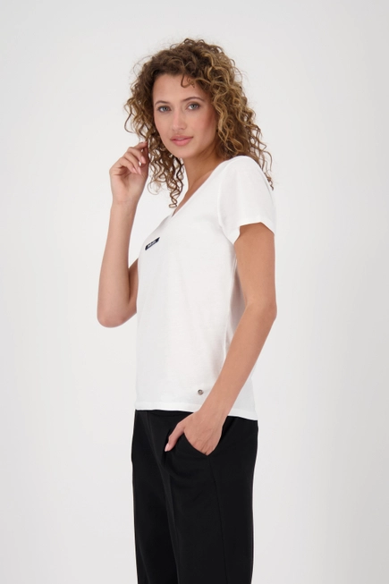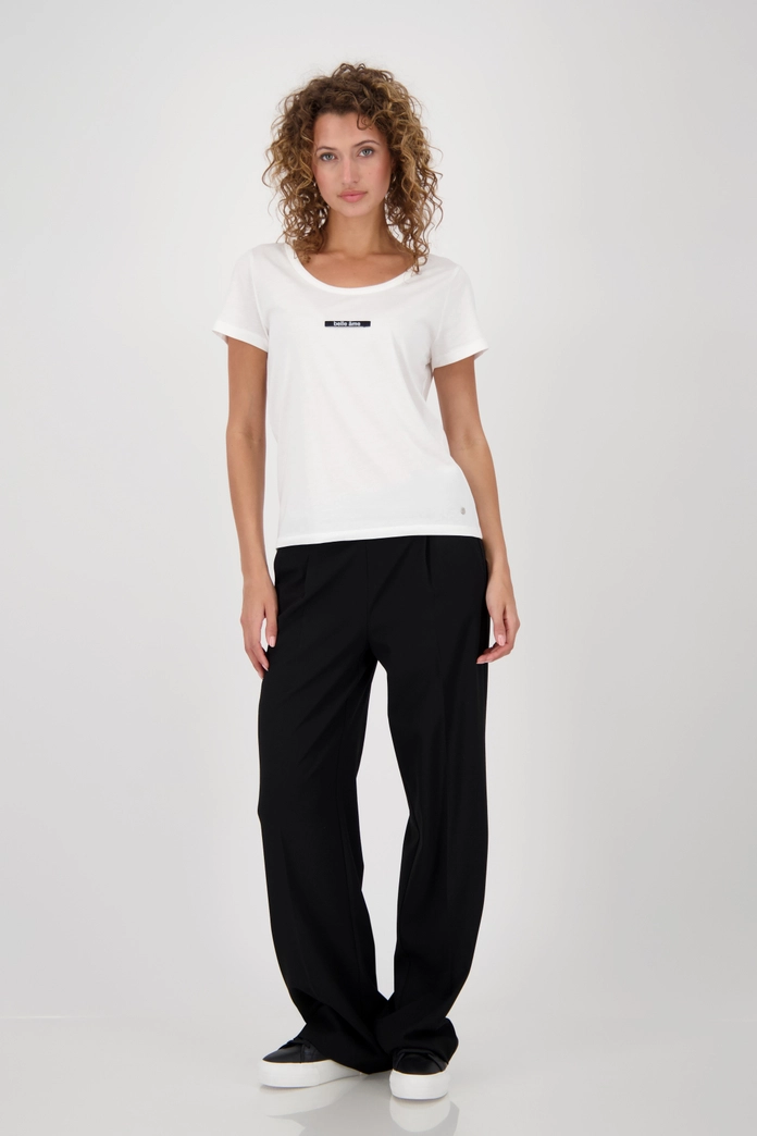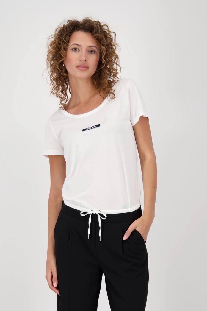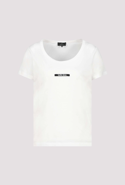Objavte štýlové tričko vyrobené z vysoko kvalitnej bavlny s modalom, okrúhlym výstrihom a elegantnou mini nášivkou „belle ame“.