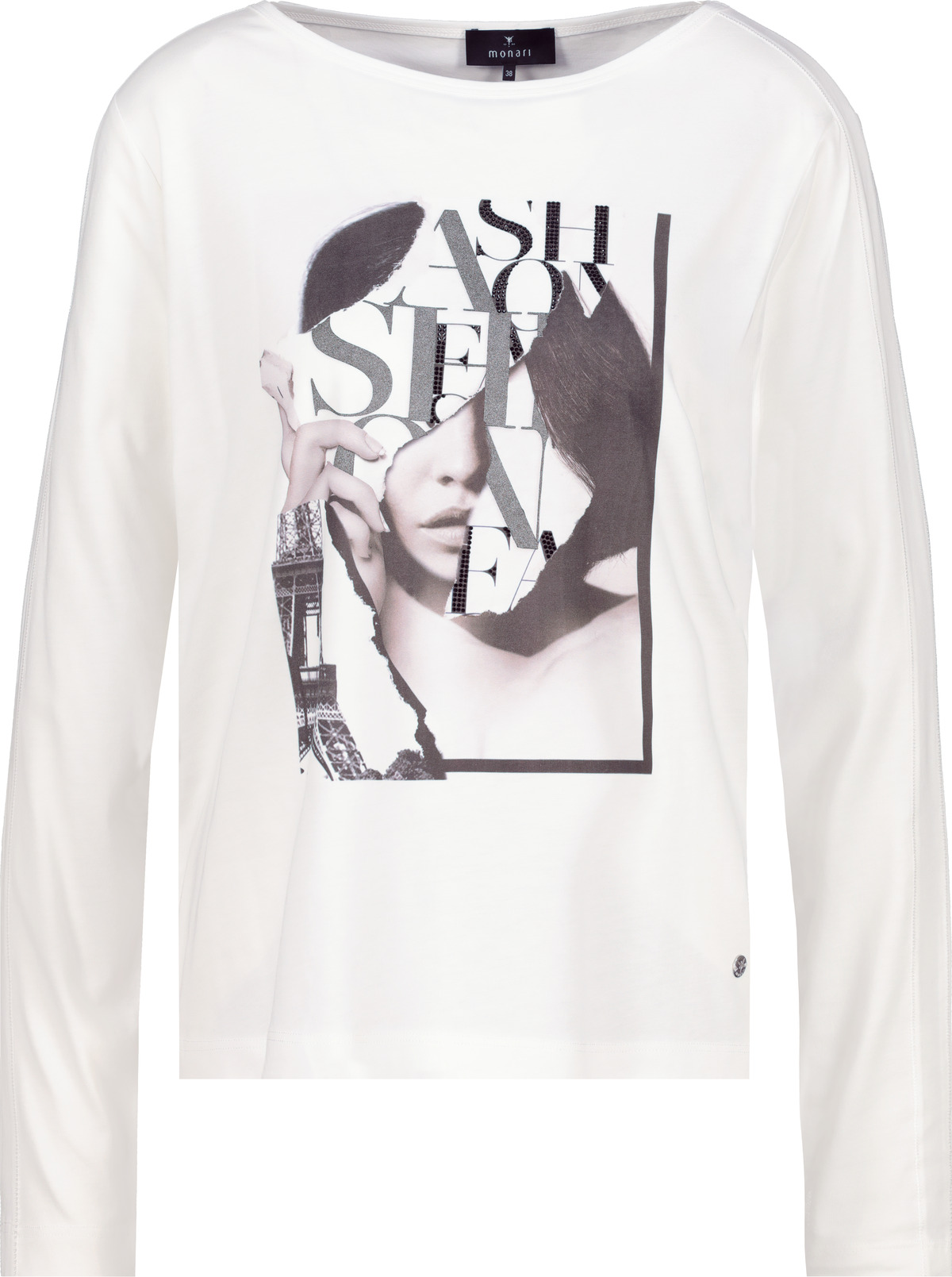 Štýlové tričko s dlhým rukávom vyrobená z vysoko kvalitnej bavlny s modalom, zdobená kamienkami a potlačou ženy.