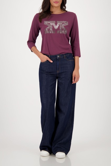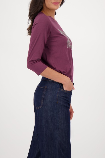 Toto tričko z bavlny a modalu sa vyznačuje kamienkami, má klasický strih a ¾ rukávy pre sofistikovaný a pohodlný vzhľad. Ideálna na každú príležitosť.