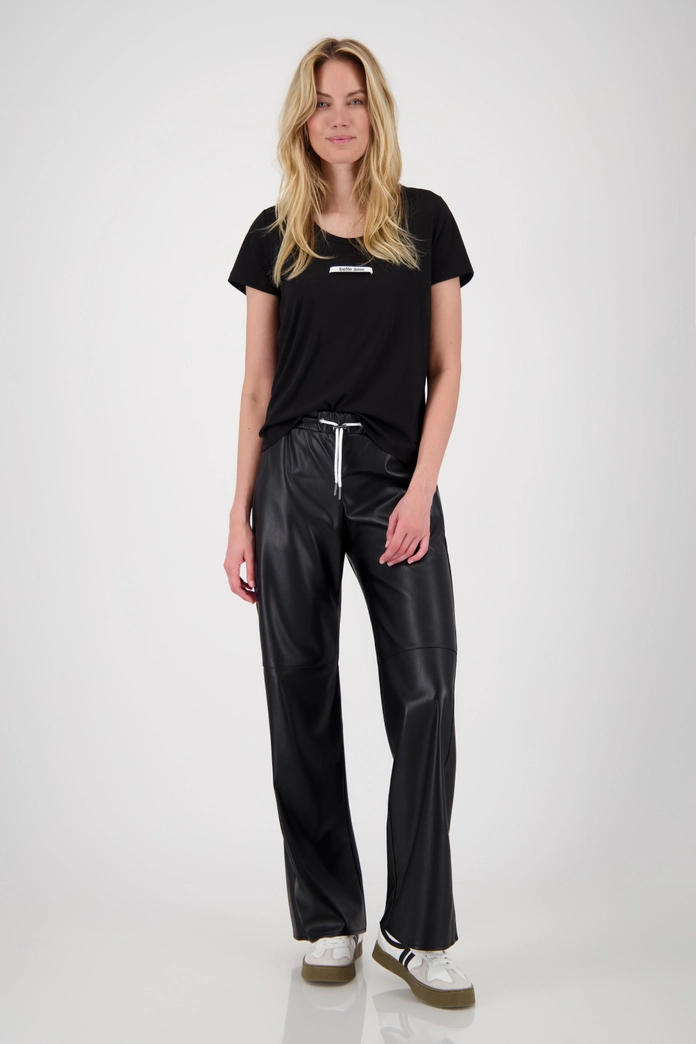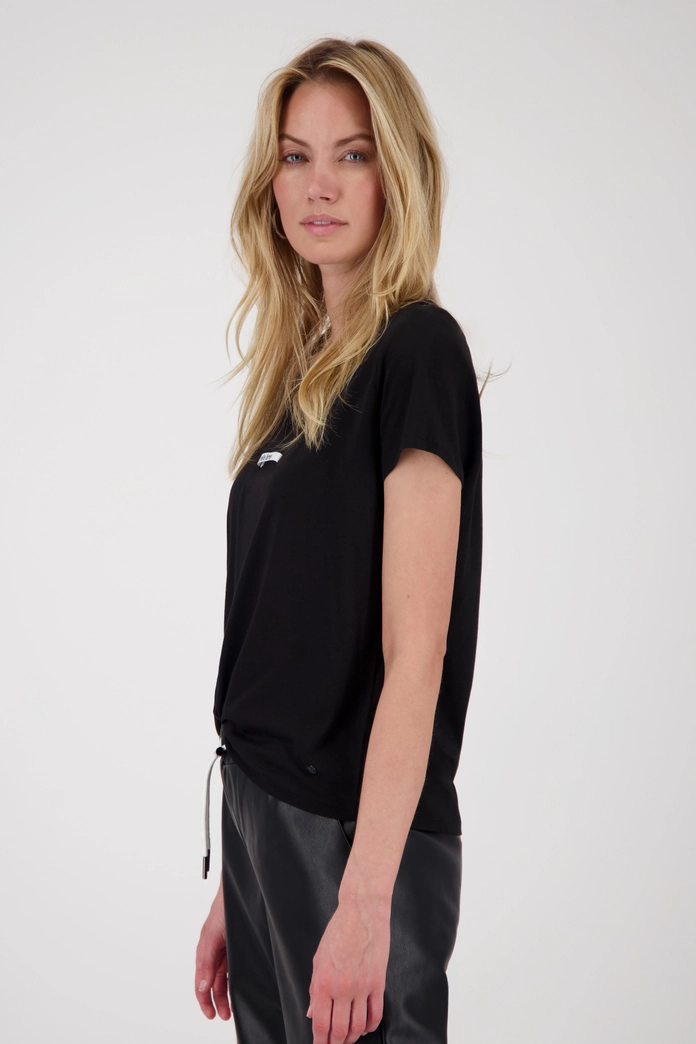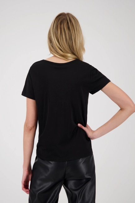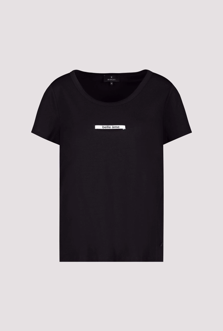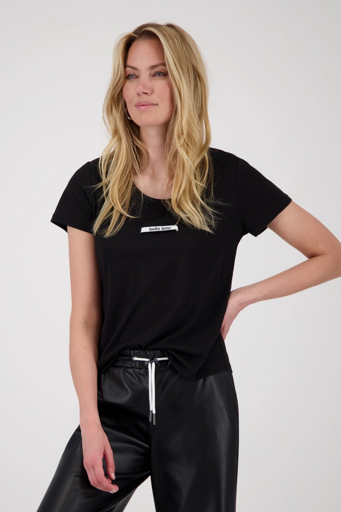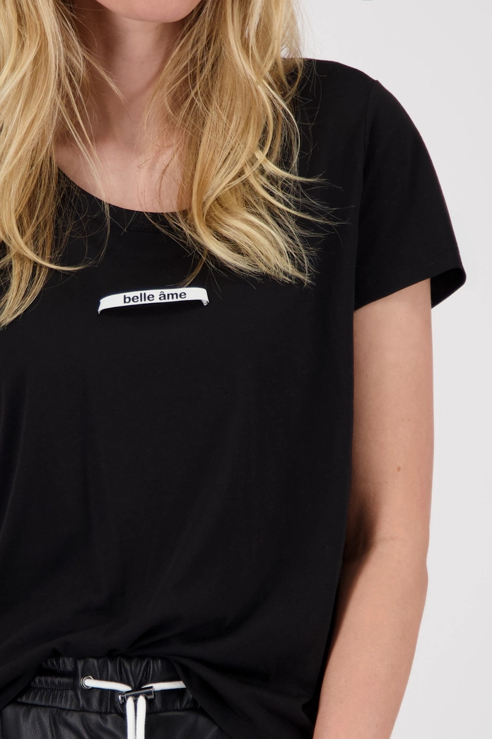 Objavte štýlové tričko vyrobené z vysoko kvalitnej bavlny s modalom, okrúhlym výstrihom a elegantnou mini nášivkou „belle ame“.