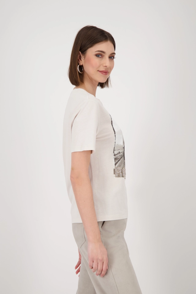 Trendové tričko s unikátnou fotografickou potlačou „road trip“, ozdobené trblietavými kamienkami.