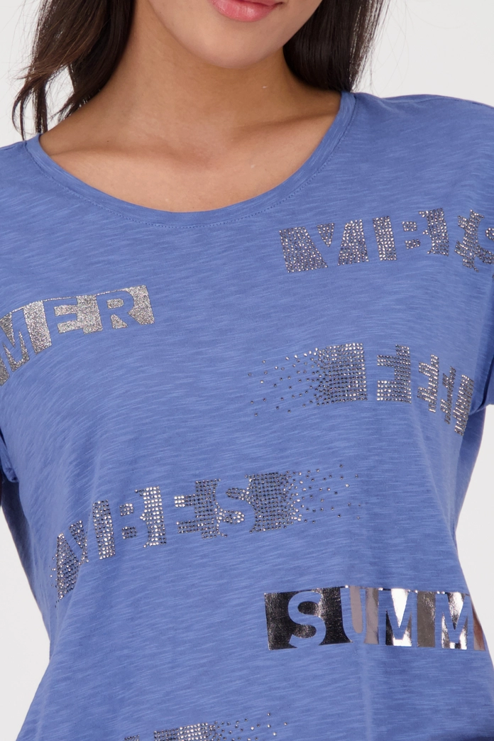 Tričko s ozdobným nápisom je vyrobené zo zmesi bavlny a modalu. Má okrúhly výstrih a krátke rukávy. Štýlový a pohodlný kúsok.