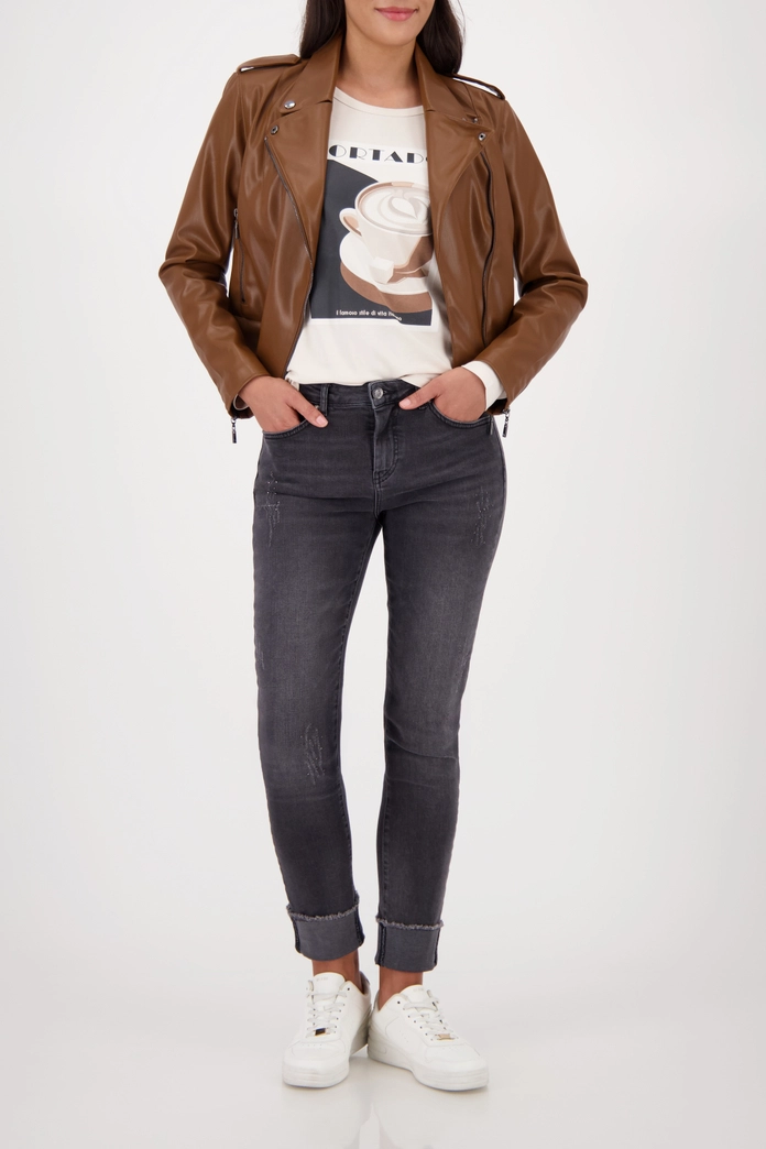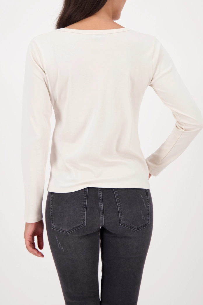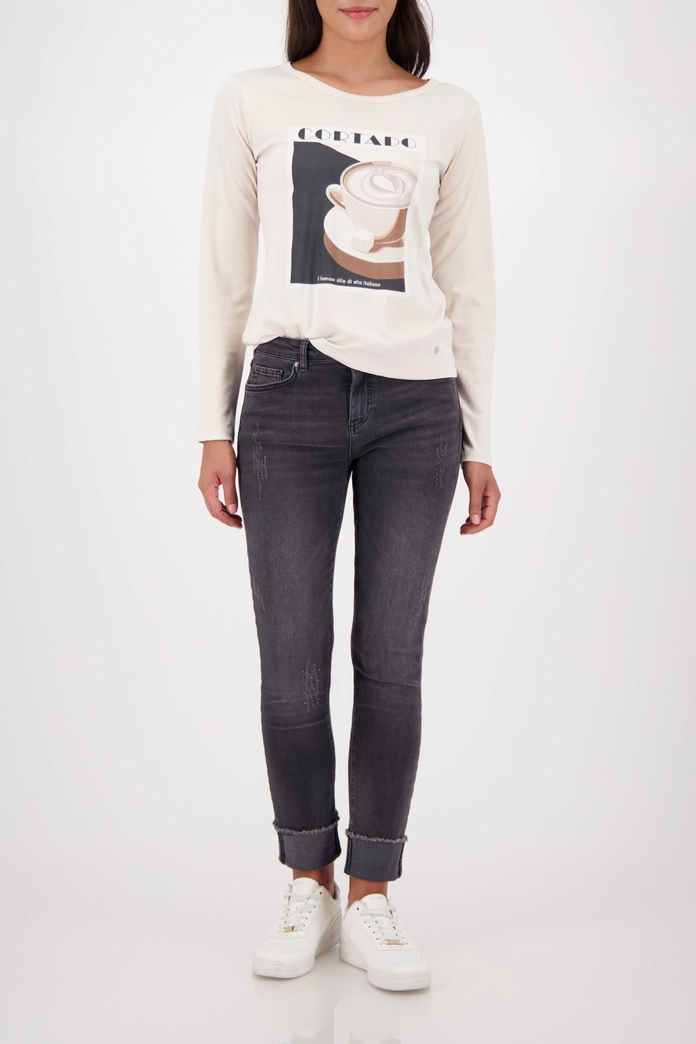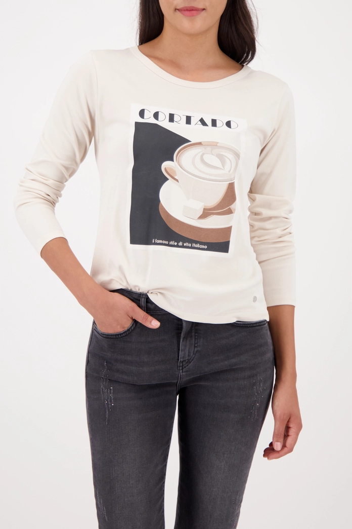 Táto štýlová košeľa s dlhým rukávom vyrobená zo 100 % bavlny sa vyznačuje potlačou cappuccina a trblietavými kamienkami.