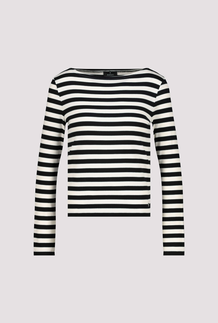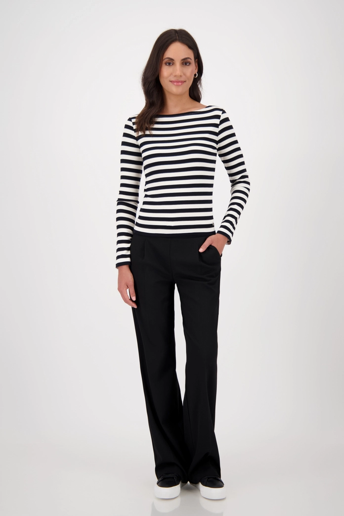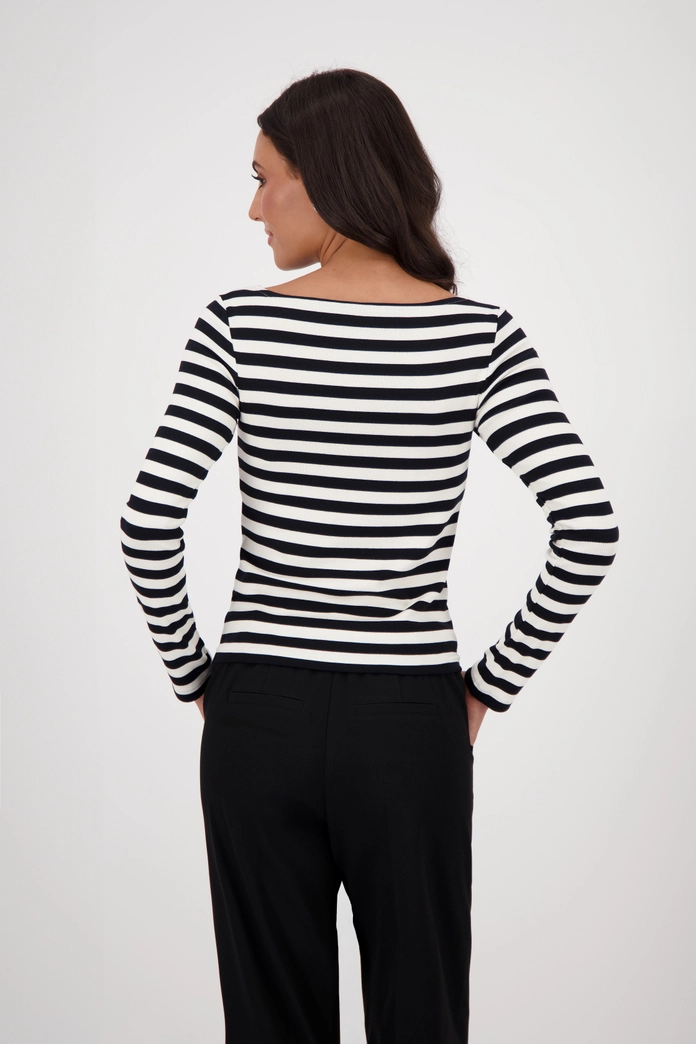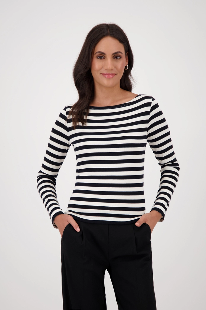 Elegantná košeľa z padavej viskózy s elastickým materiálom, s očarujúcim pruhovaným vzorom, lodičkovým výstrihom a dlhým rukávom regular fit pre štýlový vzhľad.