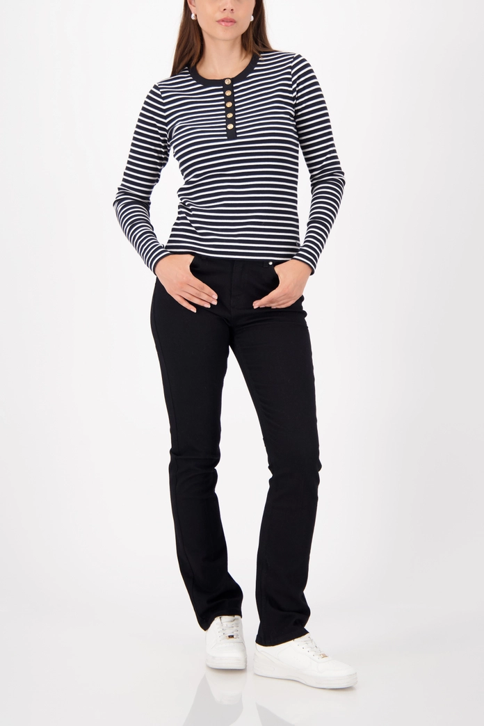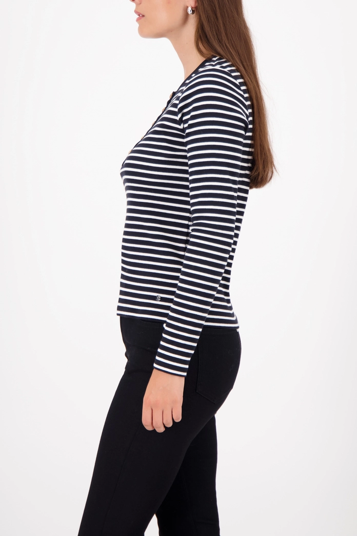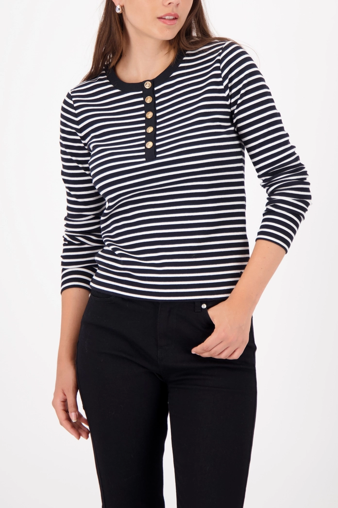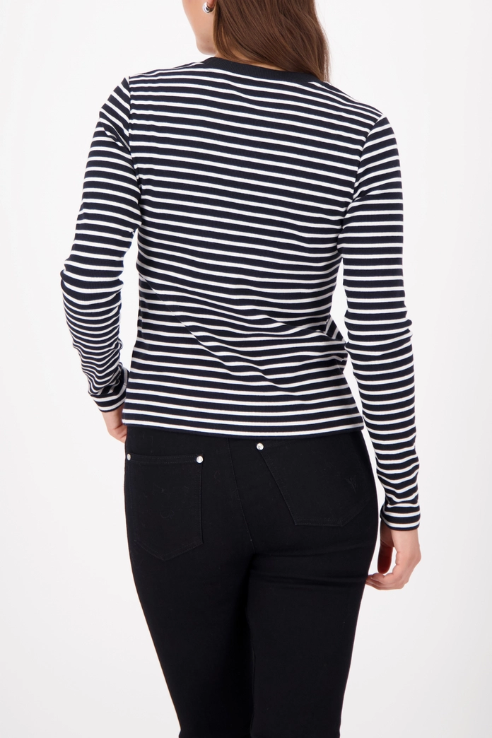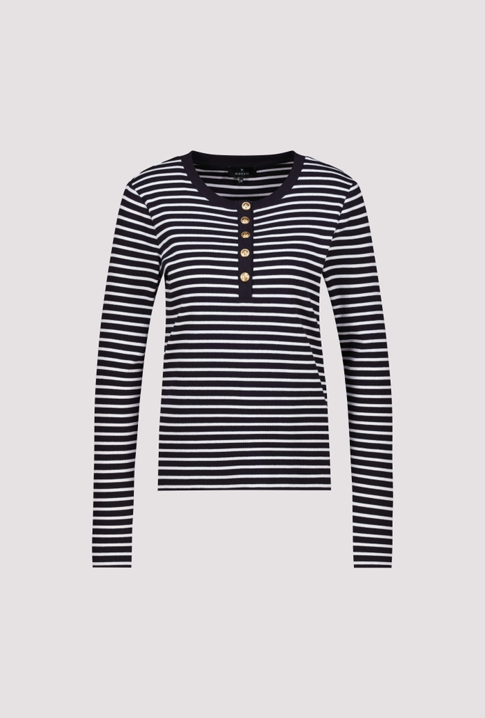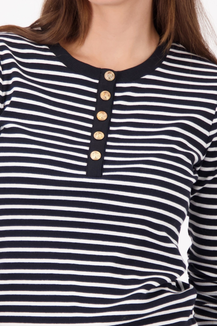 Táto štýlová košeľa s dlhým rukávom, vyrobená z vysoko kvalitnej bavlny, kombinuje elastický materiál, elegantný pruhovaný vzor a trblietavé ozdobné gombíky.