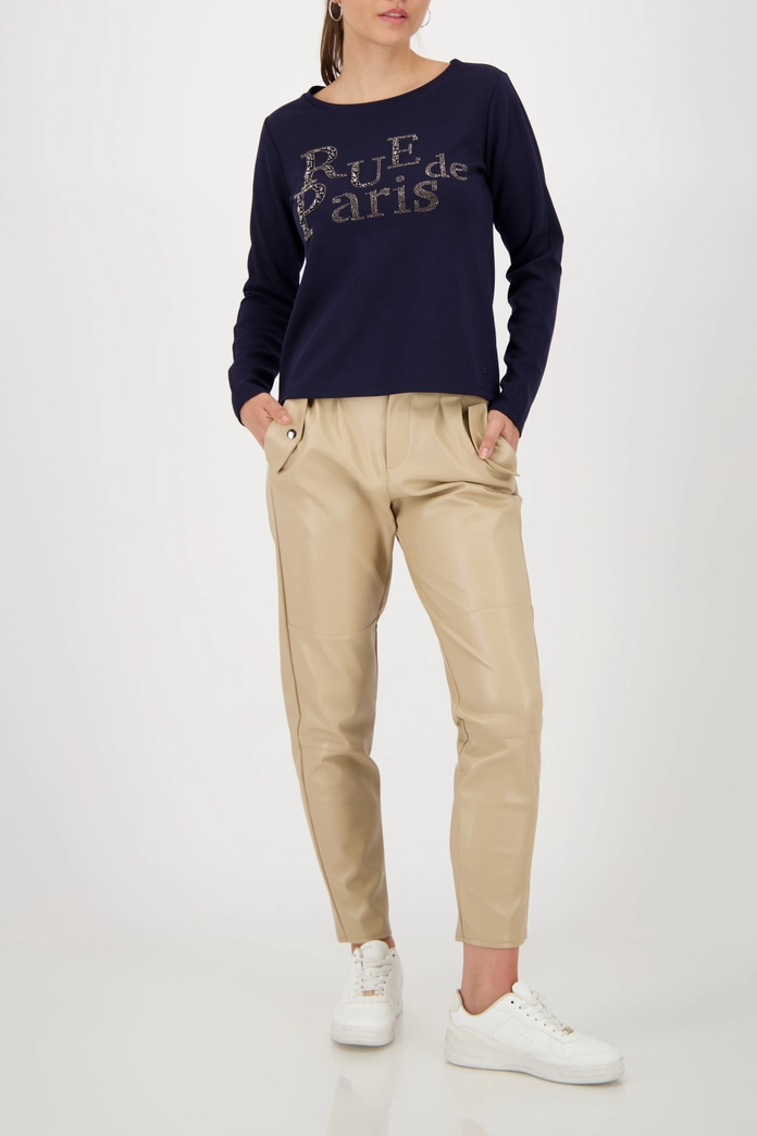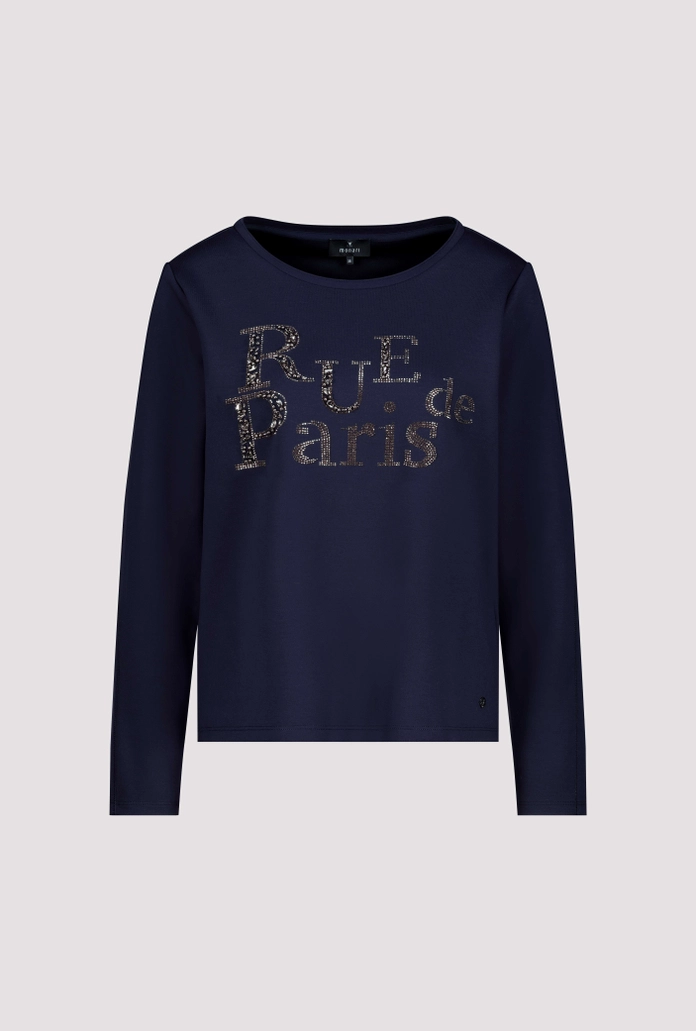 Elegantná mikina zo splývavej viskózy s luxusným nápisom „Rue de Paris“ z kamienkov a mäkkým povrchom pre štýlový vzhľad.