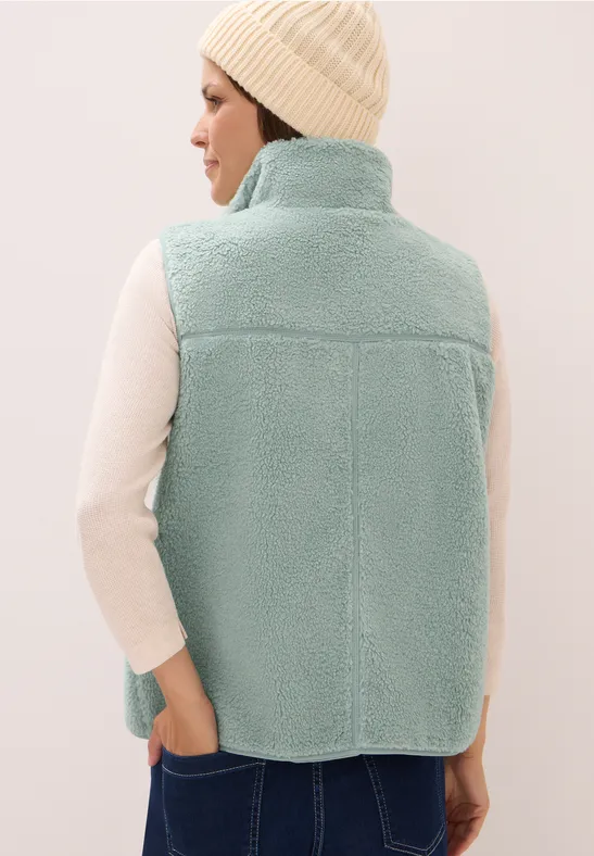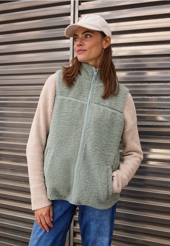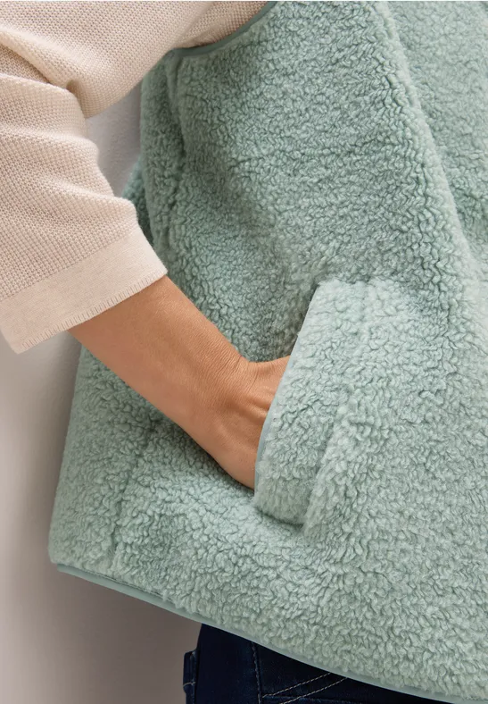 Táto krátka plyšová vesta od značky CECIL pre ženy zaujme svojou útulnou, mäkkou látkou a športovým vzhľadom.
