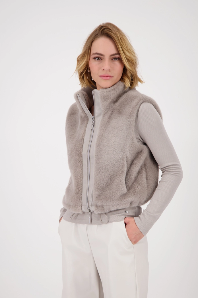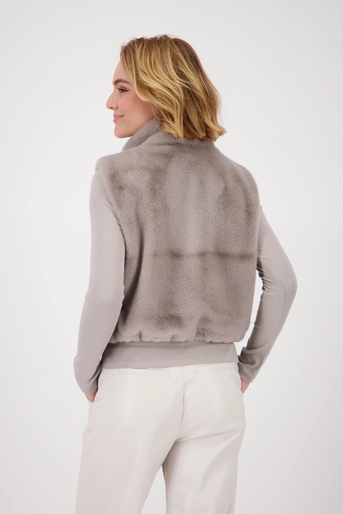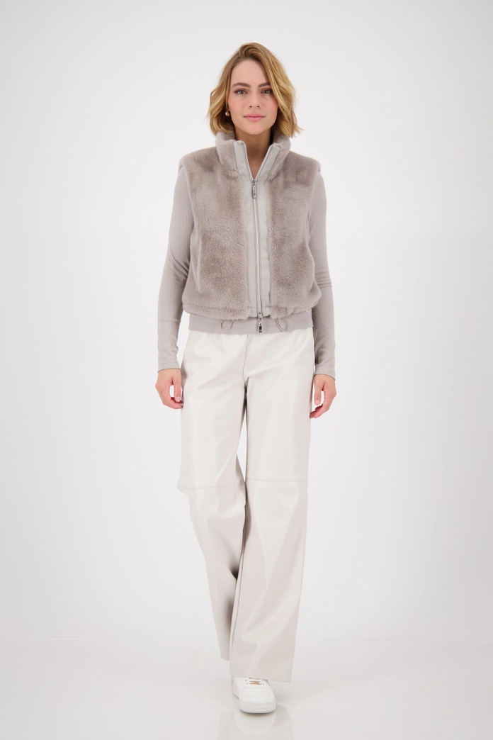 Táto elegantná kožušinová vesta zaujme svojou obzvlášť mäkkosťou na dotyk a štýlovým koženým vzhľadom na zips.