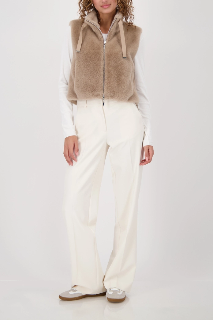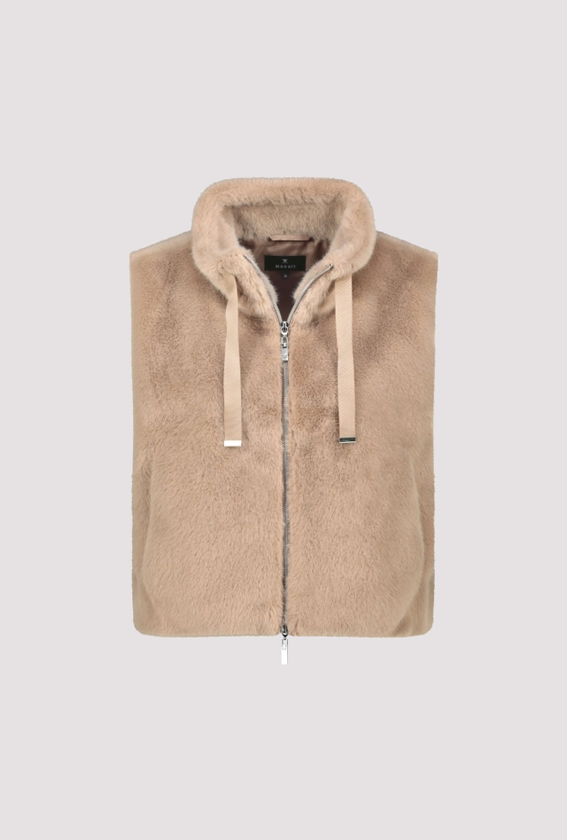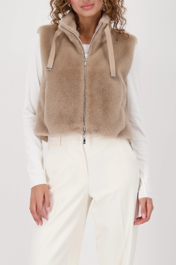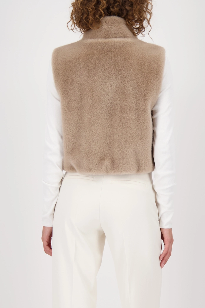 Luxusná vesta z umelej kožušiny s nadýchanou textúrou, stojačikom, bočnými vreckami a praktickým obojsmerným zipsom.